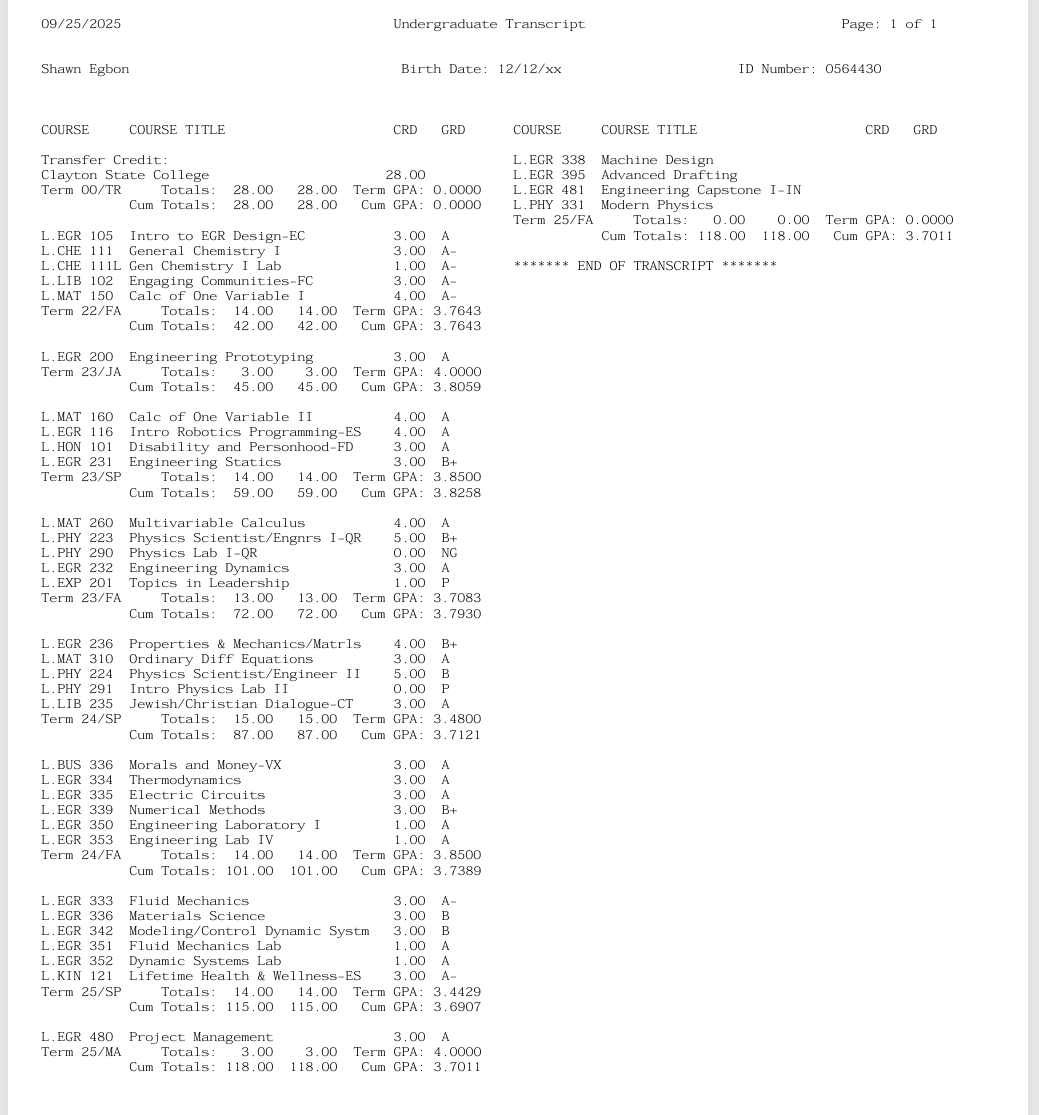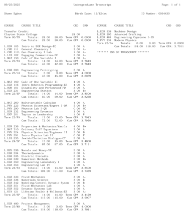 Record of completed coursework and academic achievement.