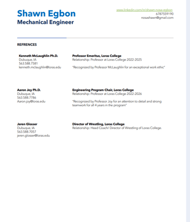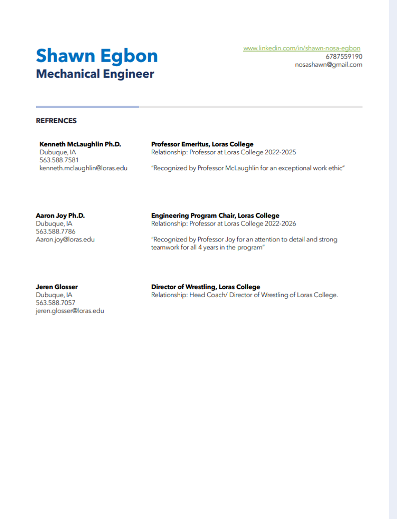 List of professional and academic references who can speak to my work ethic and and skills.